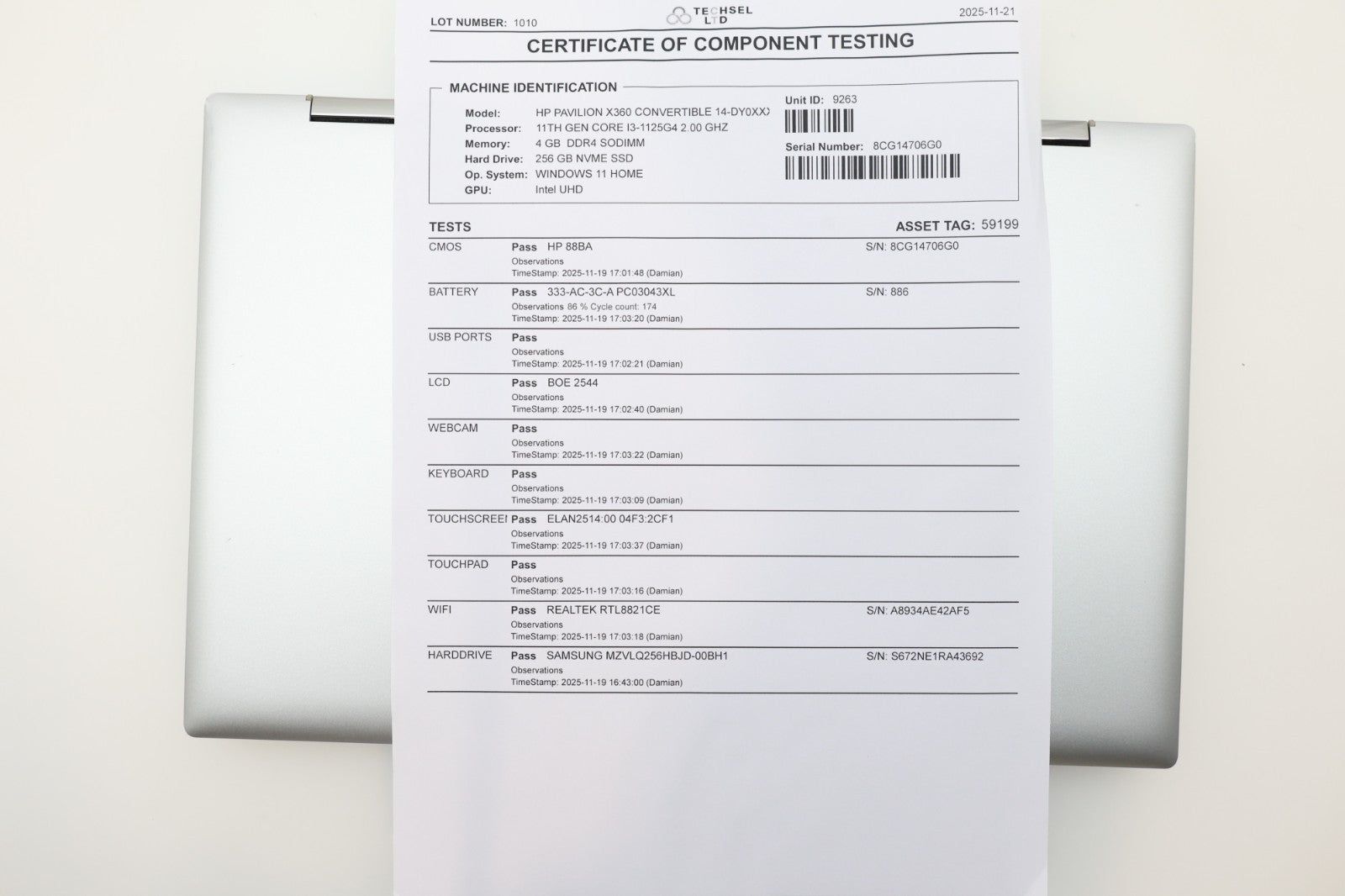 This laptop is in good cosmetic condition, showing only light signs of previous use such as a few small scuffs and surface scratches on the body. Overall, it looks great and well cared-for. The unit has been fully tested and is working perfectly, including touchscreen functionality. The battery health is strong at 86%, with just 174 charge cycles, which is excellent for continued use.