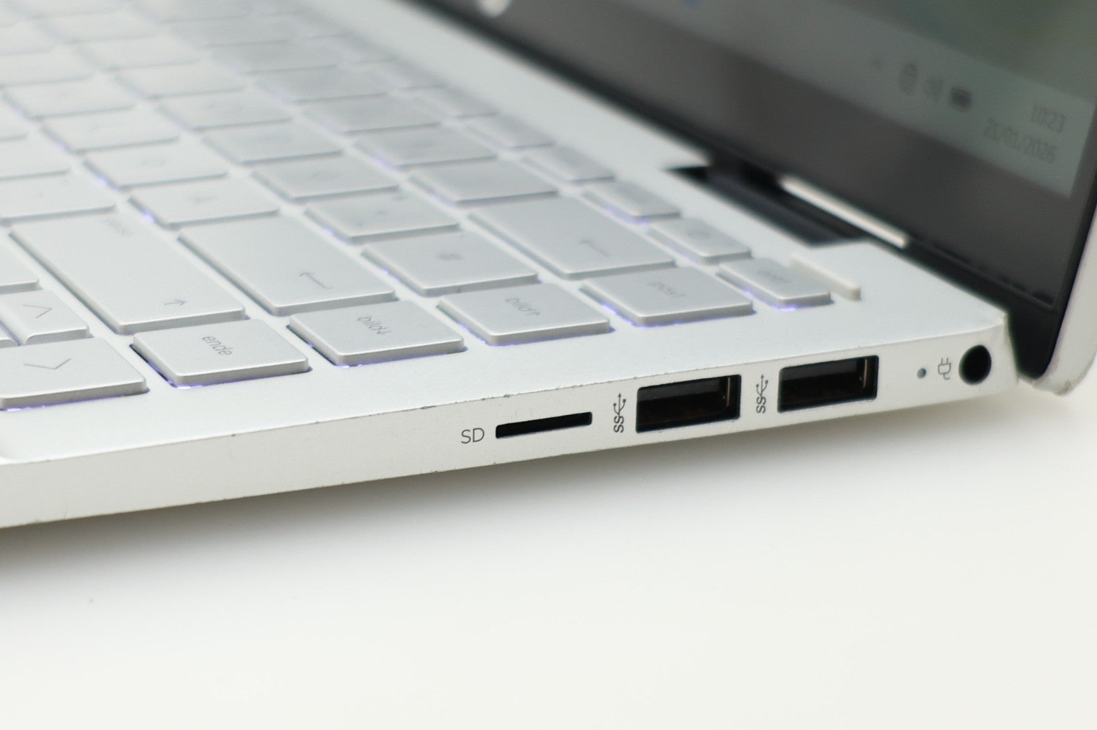 This HP Pavilion x360 is cosmetically in poor condition, showing multiple scratches, scuffs, and small dents around the corners. These are purely cosmetic and do not affect the laptop’s functionality. The touchscreen and keyboard work perfectly, and all ports and features have been tested and confirmed working. Despite the exterior wear, the battery health is very good, holding around 90% capacity with only 116 charge cycles logged. The laptop includes a German QWERTZ keyboard layout.
