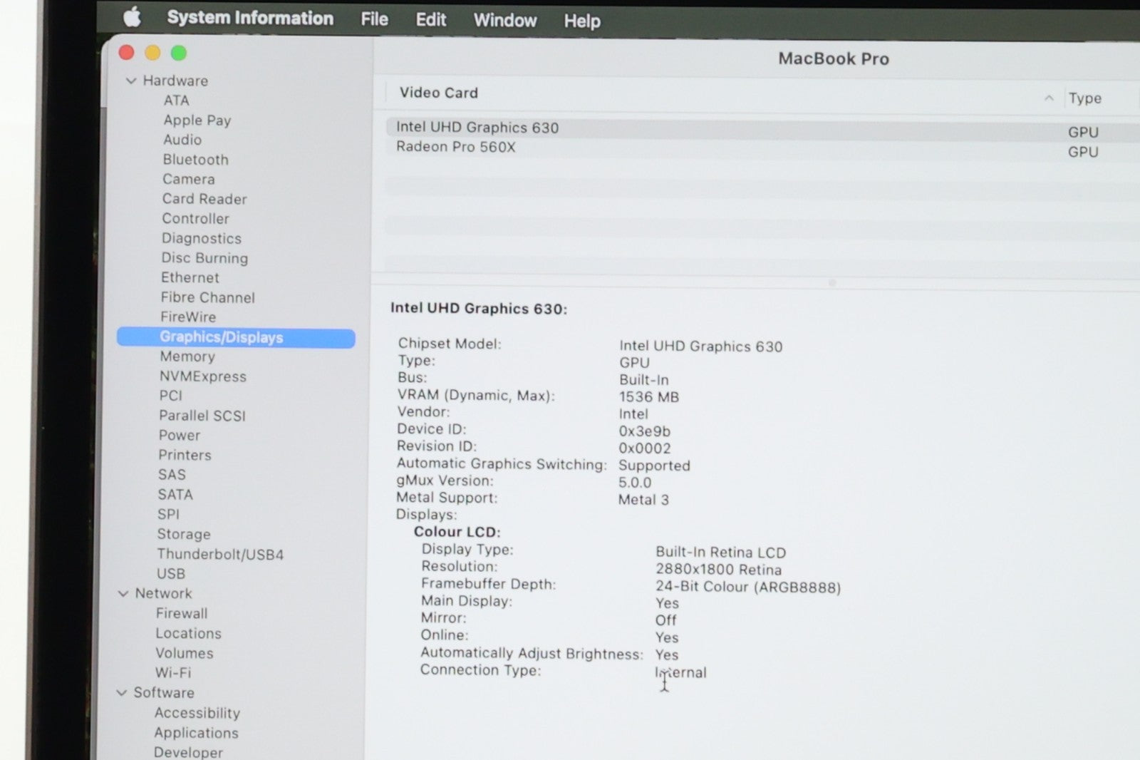 Graphics: AMD Radeon Pro 560X + Intel UHD 630