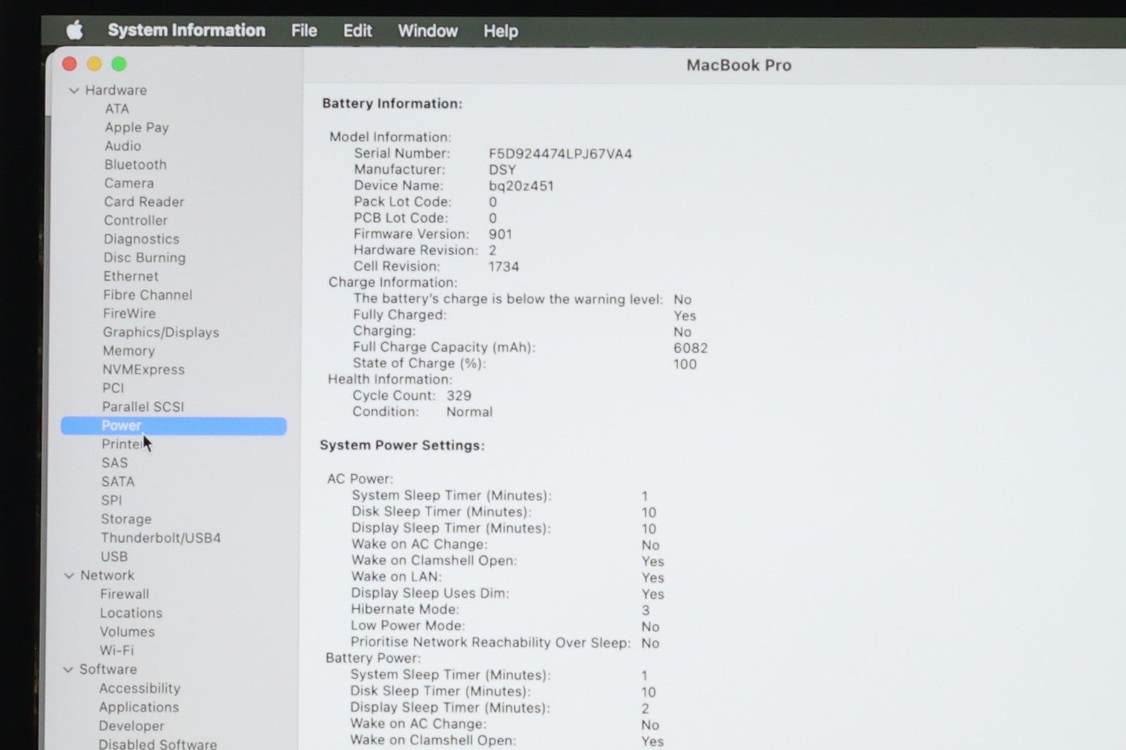 Functionally, it has been fully tested and works perfectly. All components including the display, keyboard, trackpad, ports, speakers, and internal cooling have passed diagnostics. The battery holds charge at 80% health with 329 cycles, which is still usable but may need replacing in the near future for better portability.