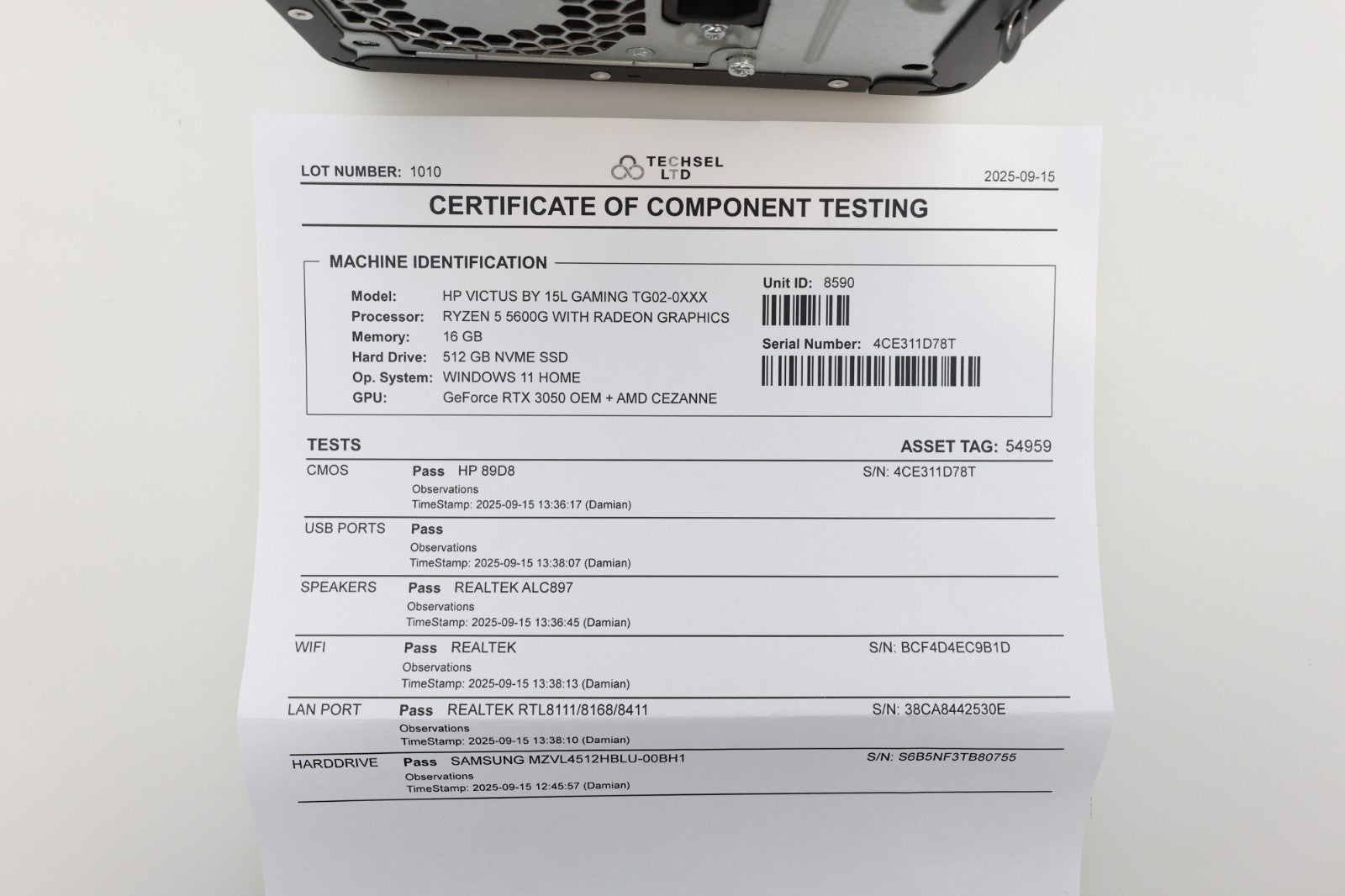 HP Victus 15L Gaming PC Ryzen 5 5600g 16GB RAM 512GB SSD W11 Home RTX 3050 EXC