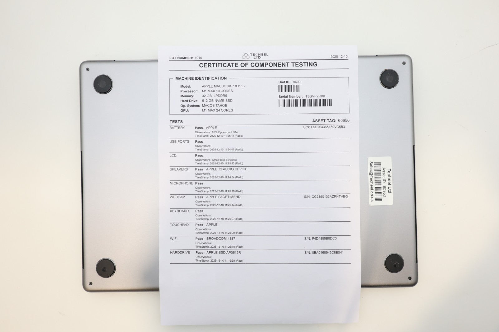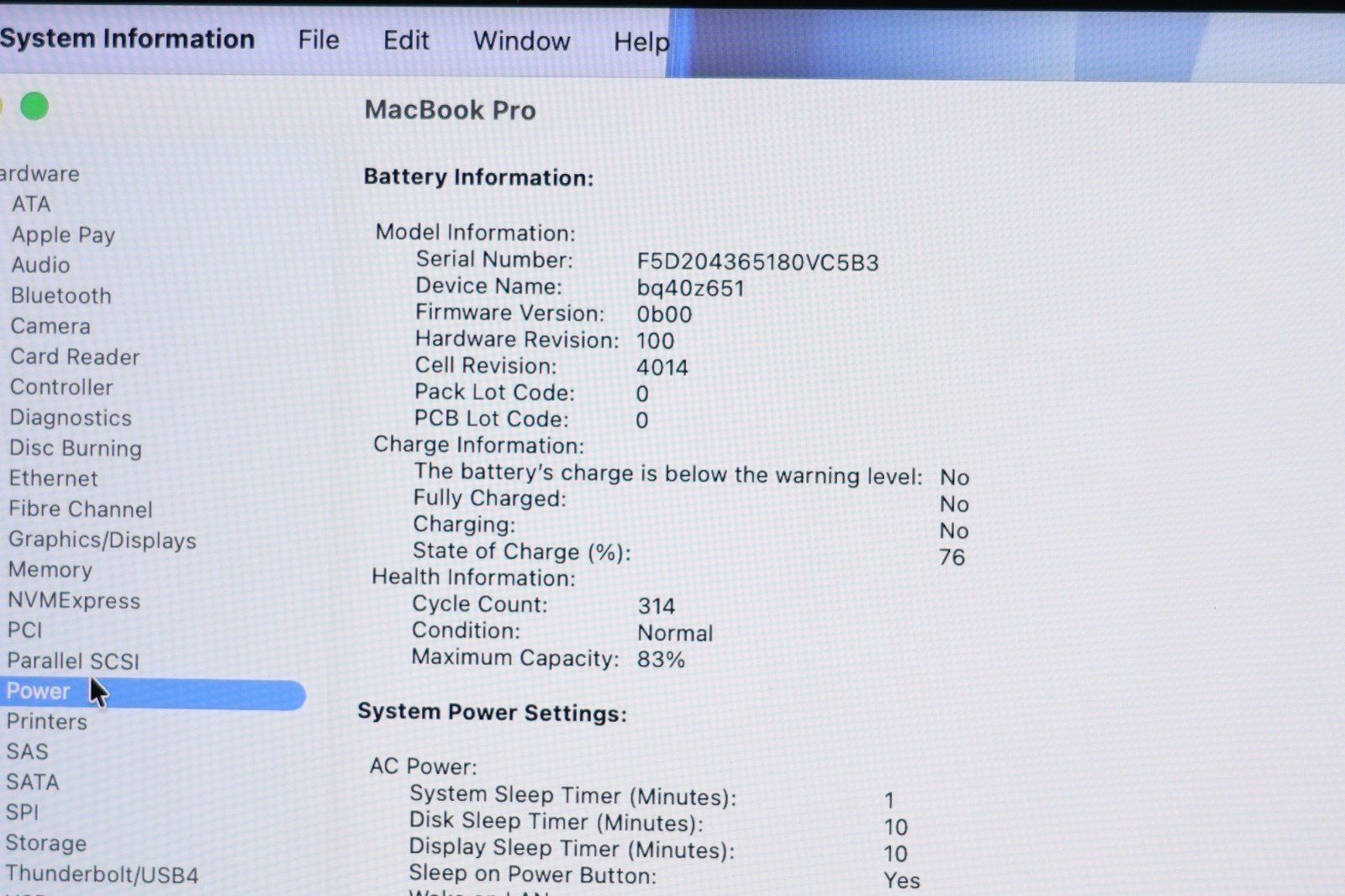 This MacBook Pro is in good overall condition. The body is clean with barely any noticeable signs of use, and the keyboard shows only light wear. There is a long superficial scratch on the LCD, but it’s not visible when the screen is on and has no impact on functionality or image quality. The laptop has been fully tested and works perfectly. Battery health is at 83%, with 314 charge cycles – still performing reliably. Comes with a compatible charger and a FREE laptop bag to complete the bundle.