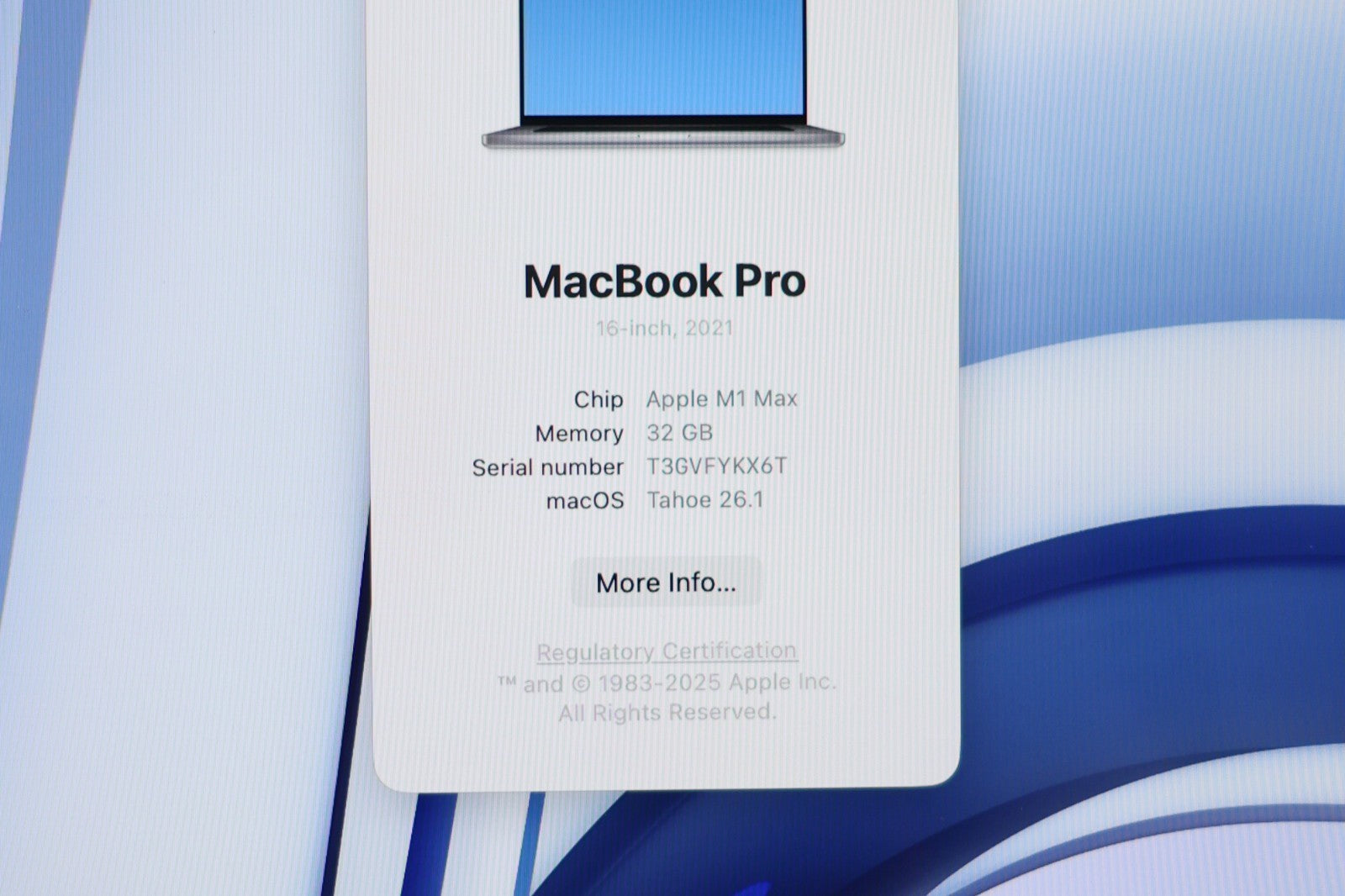 Model: Apple MacBook Pro 16-inch (2021) – Model A2485