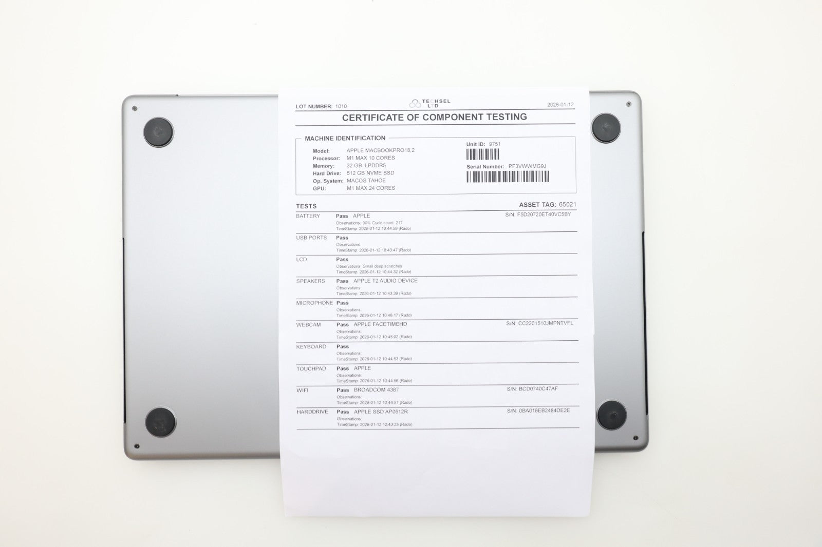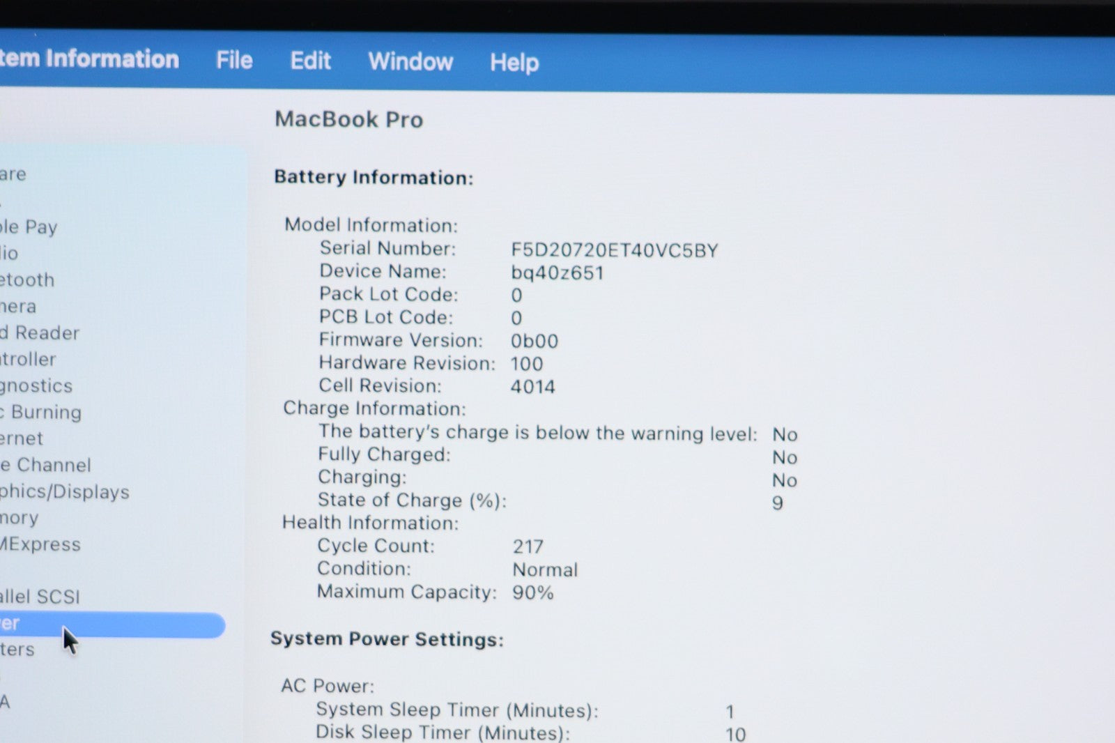 This MacBook Pro is in very good cosmetic condition, with no immediately noticeable signs of use on the outer body – very clean and well cared for. The keyboard is in excellent condition. The LCD has a few tiny, superficial scratches which may be visible at certain angles when inspected closely, but they do not affect usability or display quality. Fully tested and functioning exactly as it should. Battery health is strong at 90%, with only 217 charge cycles completed.