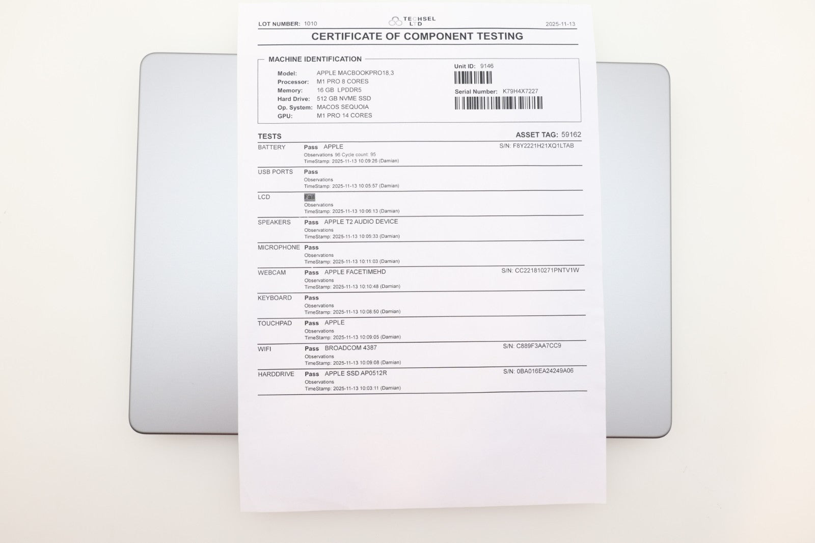 📏 Display: 14.2" Liquid Retina XDR – ❌ LCD screen is faulty and DOES NOT work at all