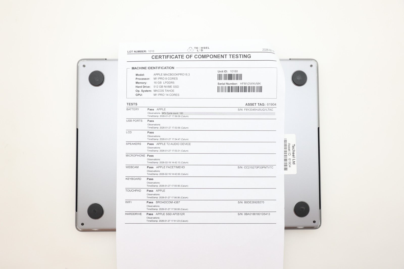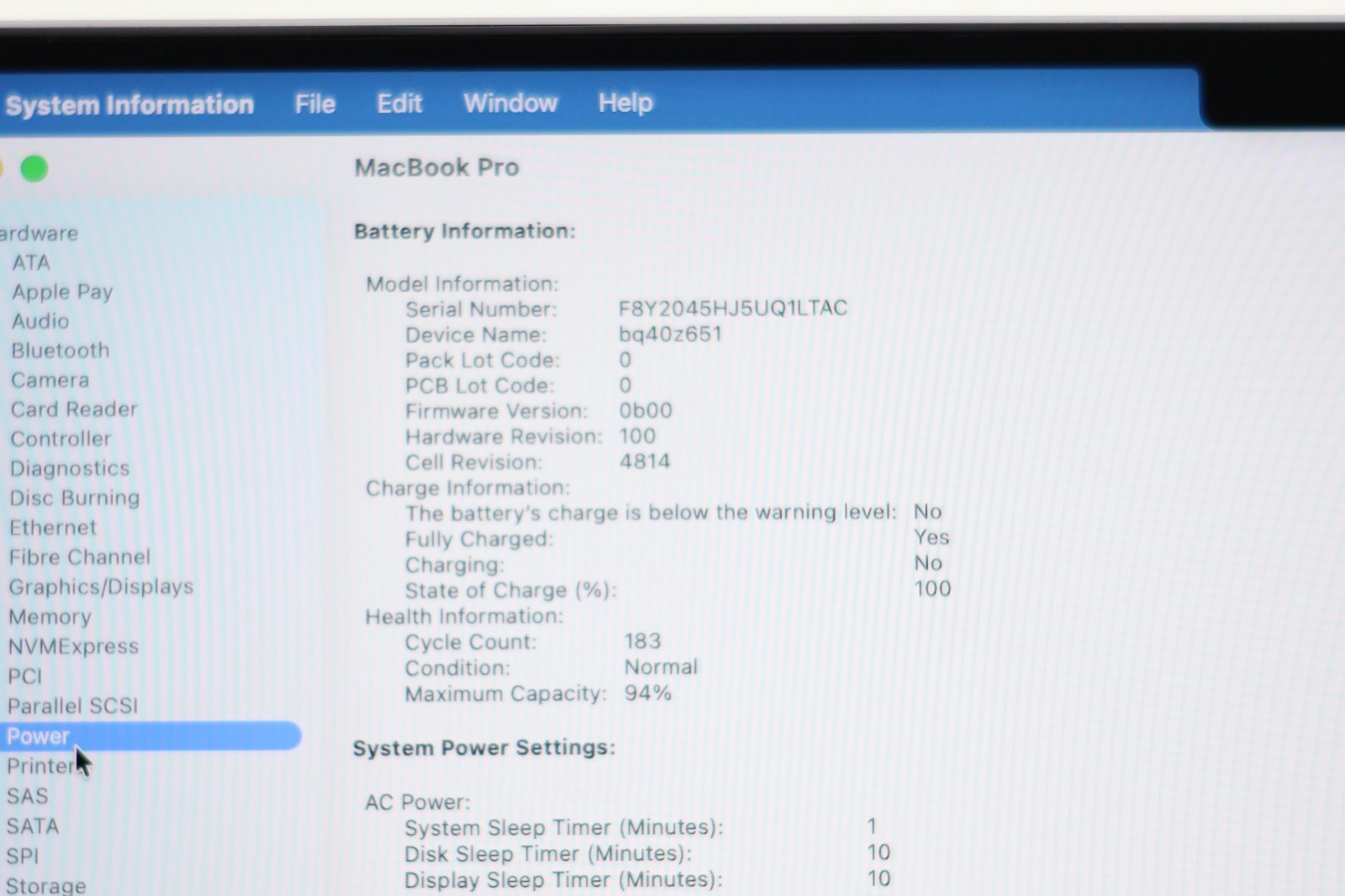 The battery health is a very good 94%, with only 183 charge cycles completed. This ensures excellent battery longevity and reliable performance for day-to-day use.