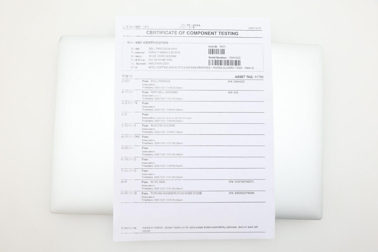 • Processor: Intel Core i7-9850H @ 2.60GHz – 6 Cores / 12 Threads ⚑