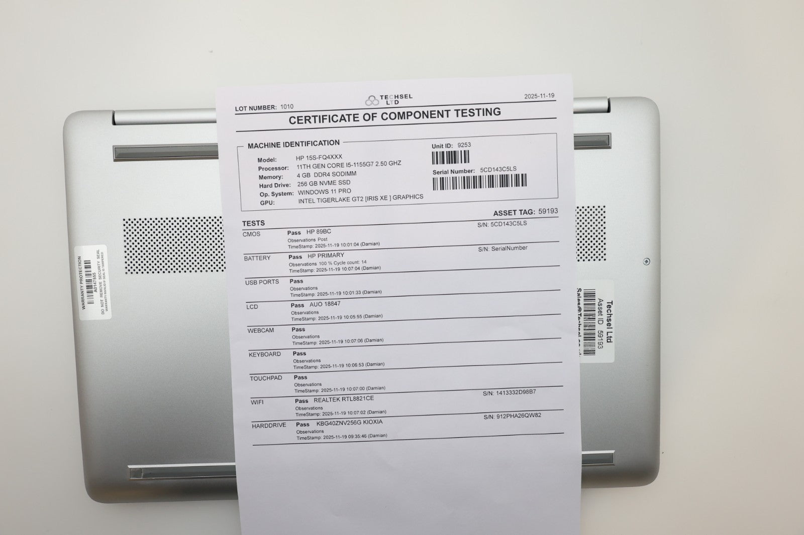 HP 15s-fq4553na Laptop i5-1155G7 4GB RAM 256GB SSD 15.6" 1Y Warranty VG
