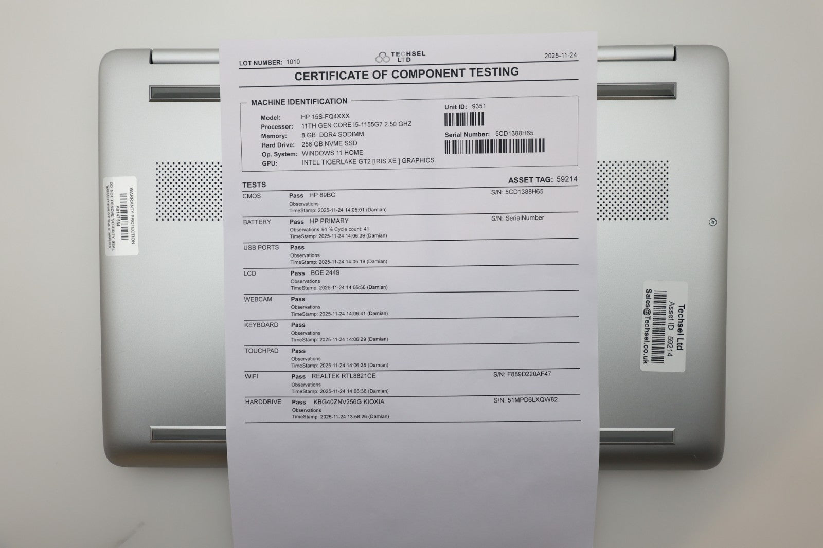 This laptop is in very good overall condition. It shows just a few small scratches and marks consistent with gentle use, but nothing that affects functionality or appearance. It looks clean and well cared for, ready for immediate use. The device has been fully tested and works perfectly, with battery health at a strong 94% and only 41 charge cycles logged. A compatible charger is included.