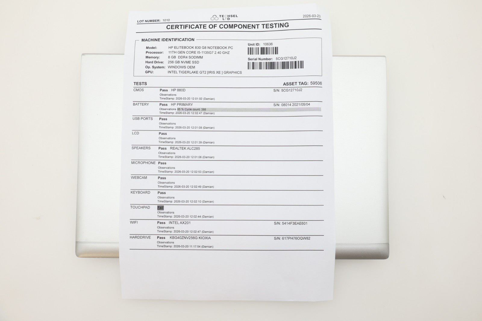- Model: HP EliteBook 830 G8