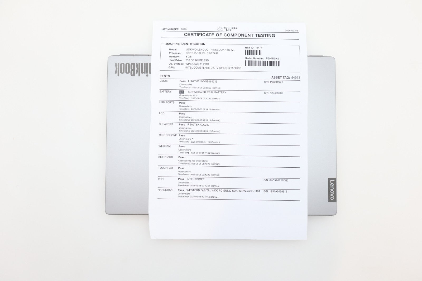Lenovo ThinkBook 13s-IML Core i5 10210U 2.11GHz 8GB RAM 256GB 13.3" Faulty Bat