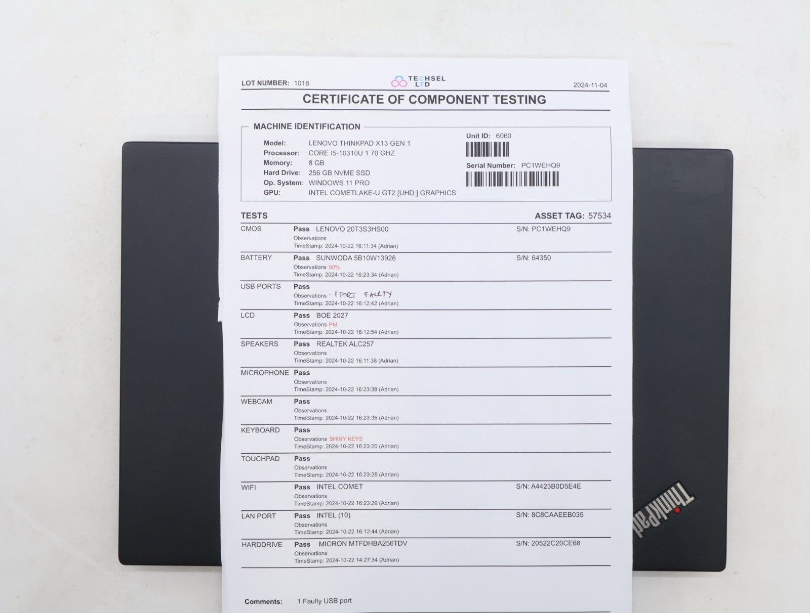 Lenovo X13 Gen1 Laptop i5-10310U 8GB RAM 256GB SSD Windows 11 Pro 13.3"