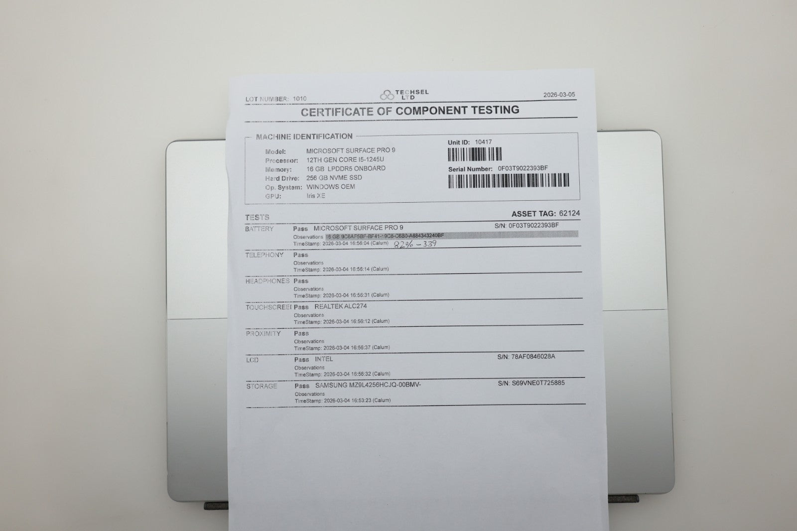 • Model: Microsoft Surface Pro 9